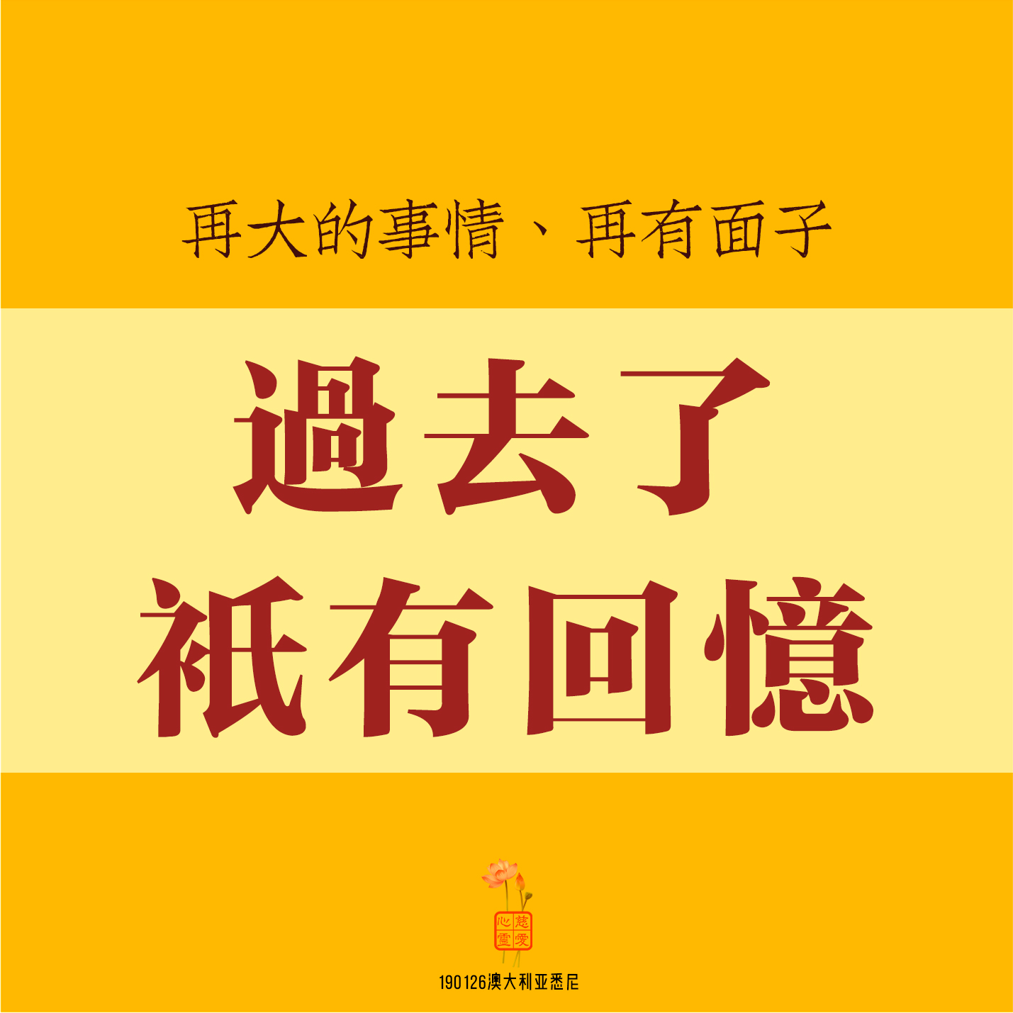 再大的事情、再有面子,过去了只有回忆。别以为能救命的是医生,其实能救自己命的就是你自己,因为修养重于救命,修养就是修身养性、延年益寿。记住,知足是最好的良药。