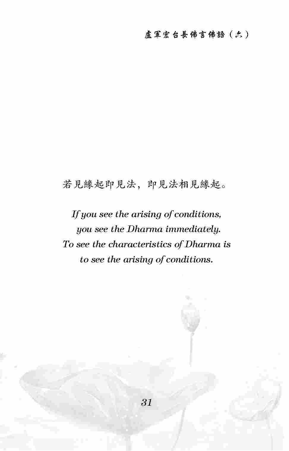 To see the characteristics of Dharma is to see the arising of conditions.