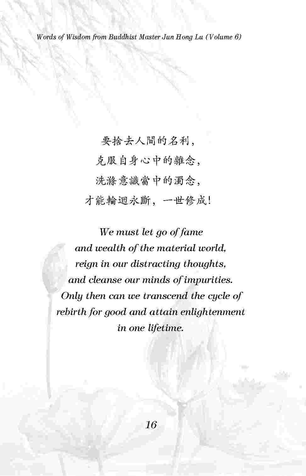 要捨去人間的名利,克服自身心中的雜念,洗滌意識當中的濁念,才能輪迴永斷,一世修成!