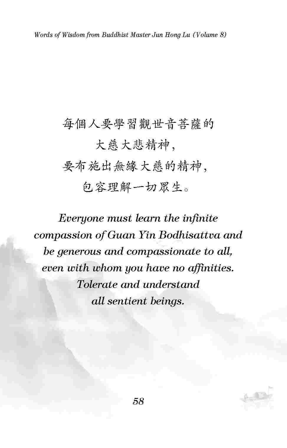 Everyone must learn the infinite compassion of Guan Yin Bodhisattva and be generous and compassionate to all, even with whom you have no affinities.