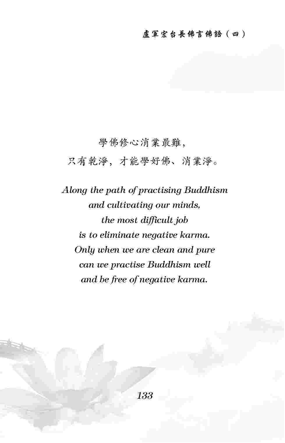 Only when we are clean and pure can we practise Buddhism well and be free of negative karma.